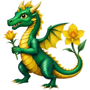 Welsh dragon holding a daffodil in it's hand emoji