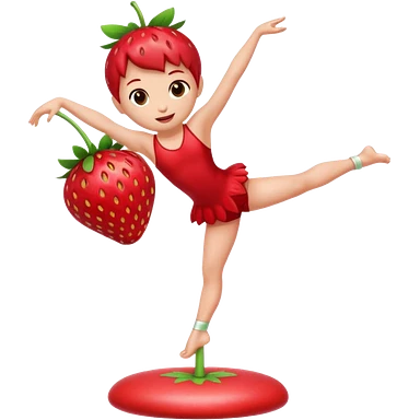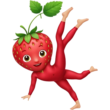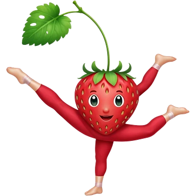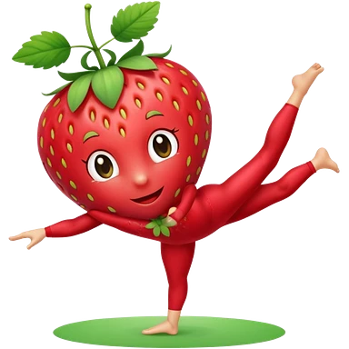 Strawberry fruit stands on one leg when doing gymnastics emoji
