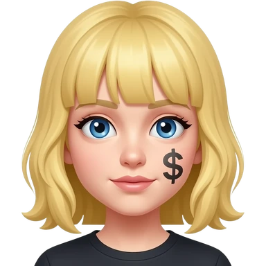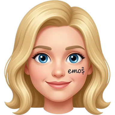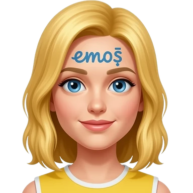 Sarı saçlı mavi gözlü üstünde emoş yazan bir yüz emoji