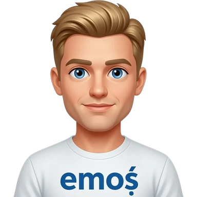Sarı saçlı mavi gözlü üstünde emoş yazan bir erkek yüzü emoji