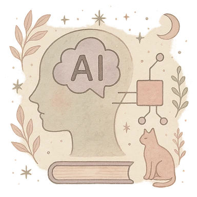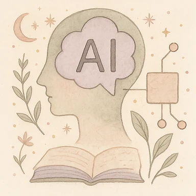 artificial inteligence A gentle, poetic digital illustration in the style of “Jardim da Ju”. The scene blends nature, cosmos and tenderness — hand-drawn lines, soft textures, and muted pastel tones (sage green, lilac, rose, cream). Elements like leaves, stars, cats, books, and celestial details coexist naturally. The mood is magical yet grounded, evoking sensitivity, reflection, and quiet intelligence. The lighting is warm and dreamy, with delicate sparkles and organic shapes. Artistic style: watercolor + fine line art, minimal, elegant, emotional and intimate. (use conforme a IA utilizada) Mood: magical realism, soft light, emotional, feminine, intellectual Style keywords: watercolor, fine ink lines, pastel tones, digital illustration, cozy, slow aesthetic, minimal poetic composition Colors: #9BA48A (verde sálvia), #E6B7B1 (rosa suave), #D0C3CC (lavanda névoa), #F6F1E7 (papel de chá), #2D2D2F (grafite noturno) Objects recorrentes: folhas, flores, livros, chá, gatos, estrelas, constelações, velas, mãos, janelas abertas, estufas, estantes, sementes, instrumentos musicais Emoção central: sensibilidade lúcida — calma, introspectiva e real emoji