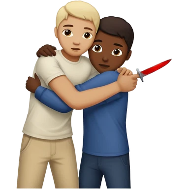Deux personnes qui se font un câlin et l'autre lui mets un couteau dans le dos emoji