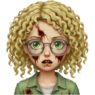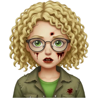 a curly girl blonde with green eyes and glasses zombie emoji