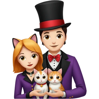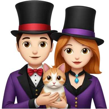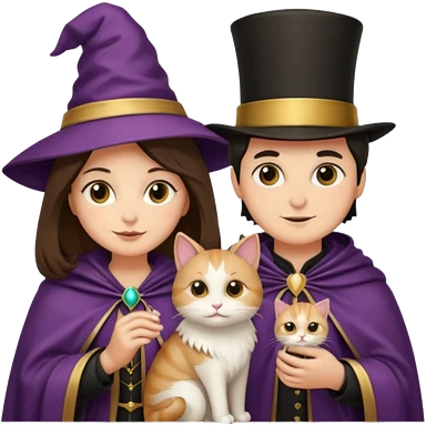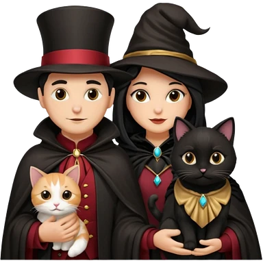magician couple and their pet cat emoji