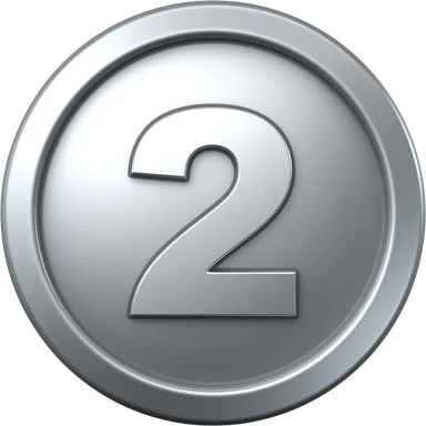 silver medal with number 2 in the center, shiny metallic silver, second place award, clean emoji style, simple background, glossy effect, minimal design, high quality emoji icon emoji