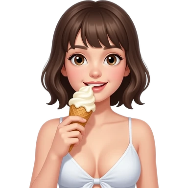 cute girl with big cleaveage eating emoji