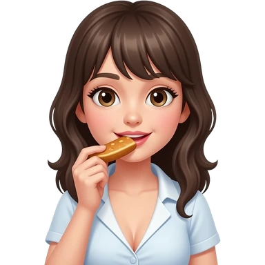 cute girl with big cleaveage eating food emoji