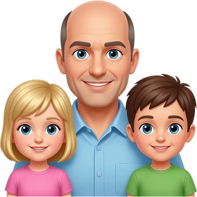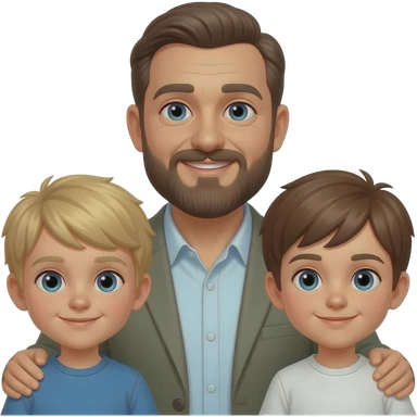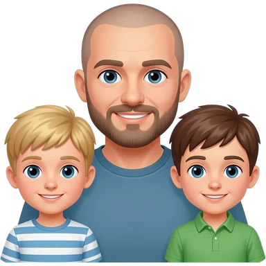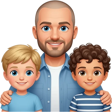 father shaved hair bearded with two male child one blond and one curly brown hair emoji