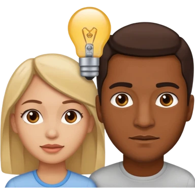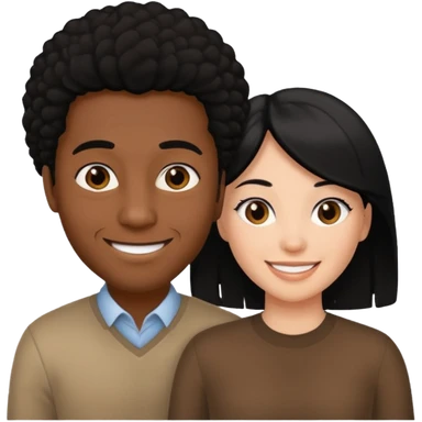 white woman with black hair behind brown man emoji