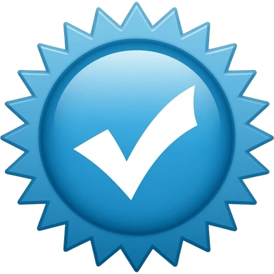 Blue starburst badge with a white checkmark symbol emoji