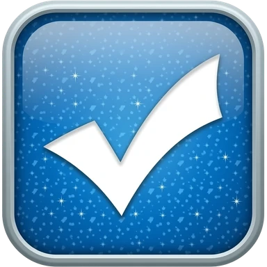 Blue stardust logo with a white checkmark, strictly only the stardust and checkmark, no other shape emoji