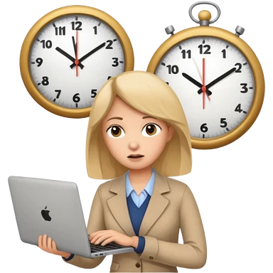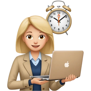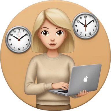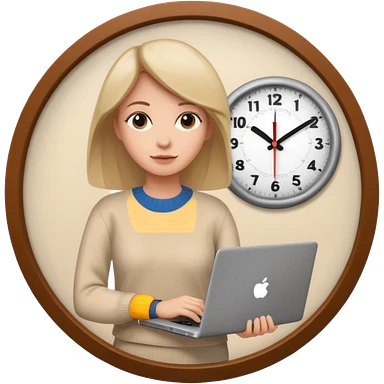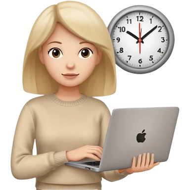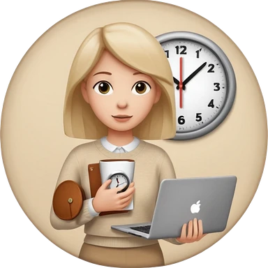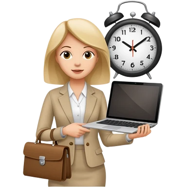 I like the 4th image. Now, make the same woman leave work with her laptop in hand. Add a round clock behind her on the wall. She is wearing a beige sweater. emoji