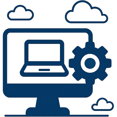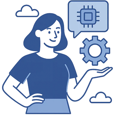 geometric AI chip icon, simple flat design, blue and white colors emoji