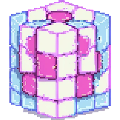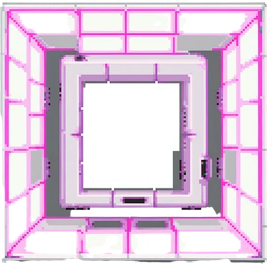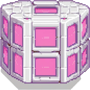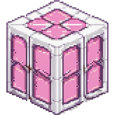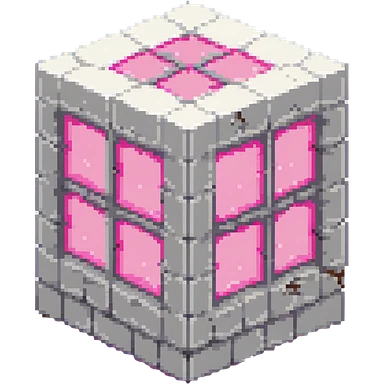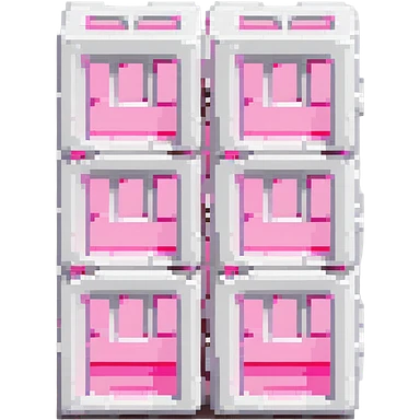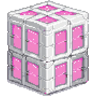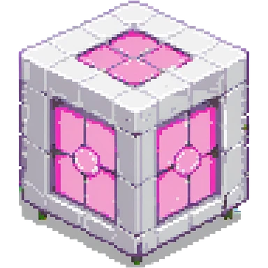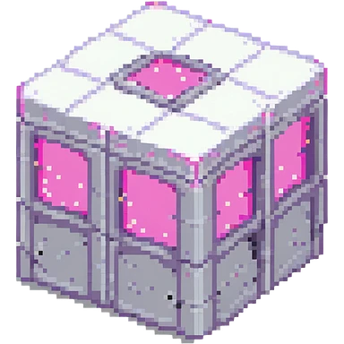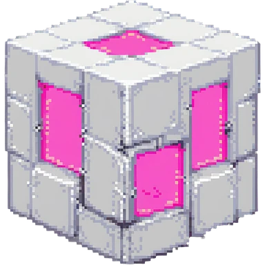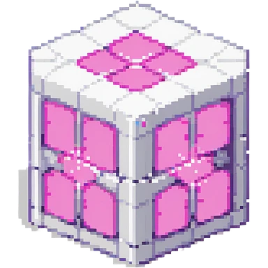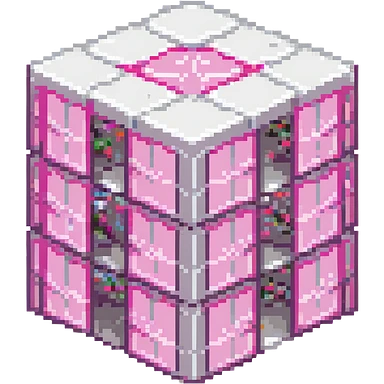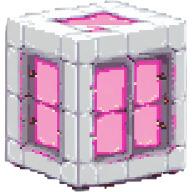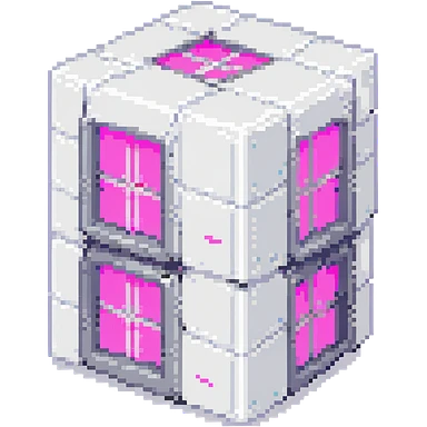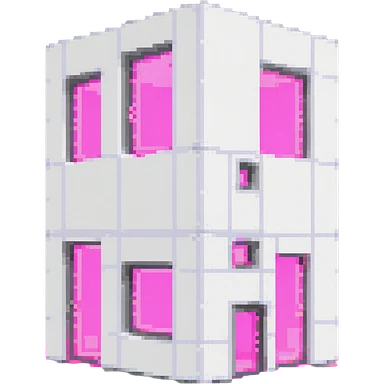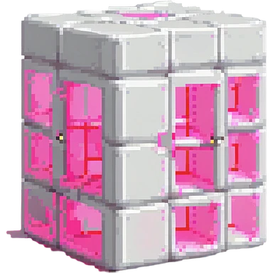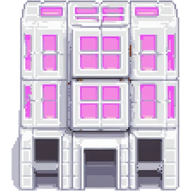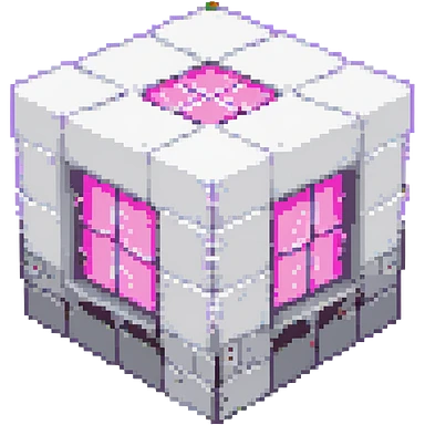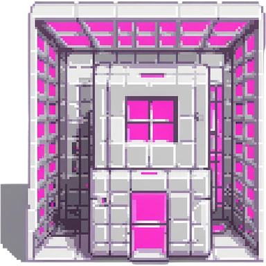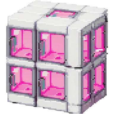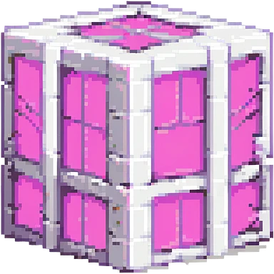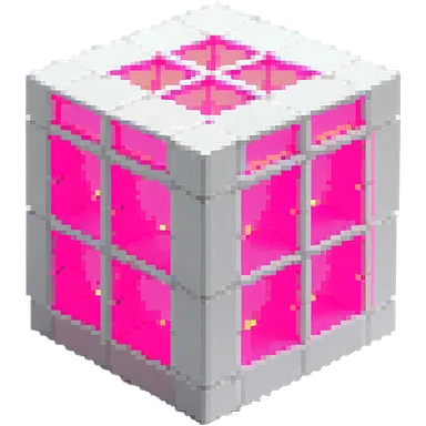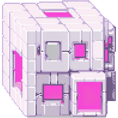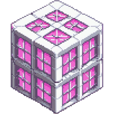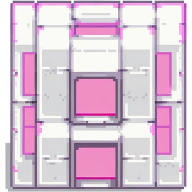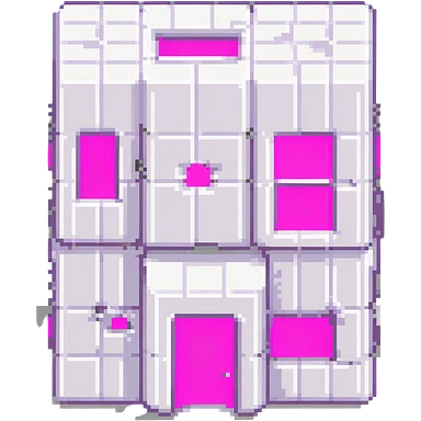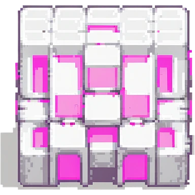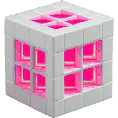 Сделай русскую панельку белого цвета. Она должна быть в виде куба, а также с окнами 3 на 3 на каждом фасаде. Некоторые окна неоново-розовые. Сверху окна нет illustration | AI Emoji Generator
