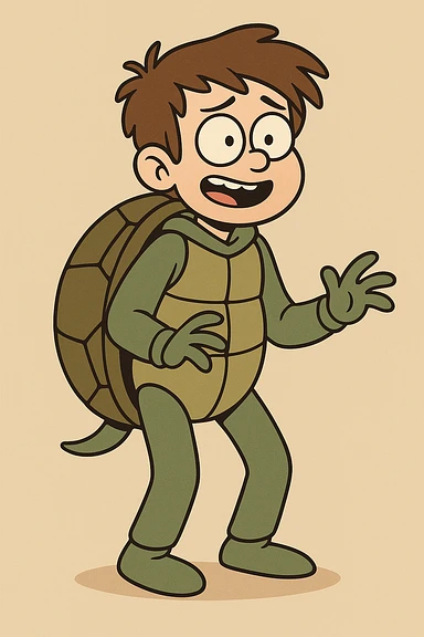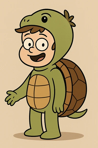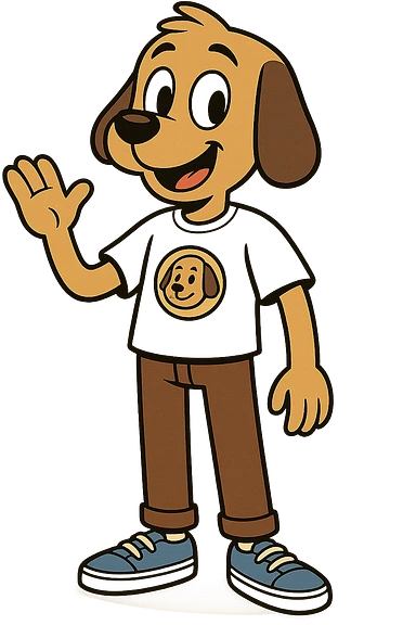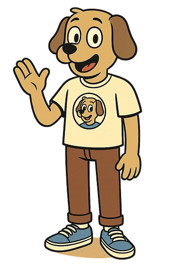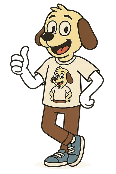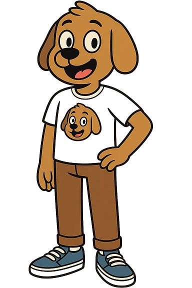 A boy dog mascot logo t-shirts brown trousers blue vans shoe emoji