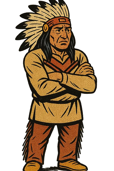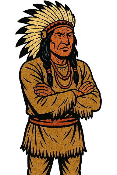 The full body of an 1860s native American chief from the American West who is looking determined emoji
