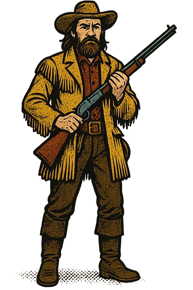 The full body of a buffalo hunter from the 1870s looking straight ahead with his rifle emoji