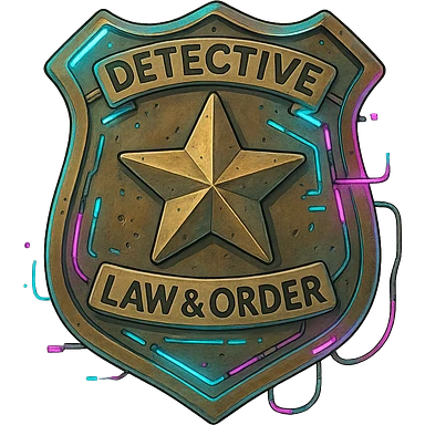 a detective badge, law and order. cyberpunk futuristic emoji
