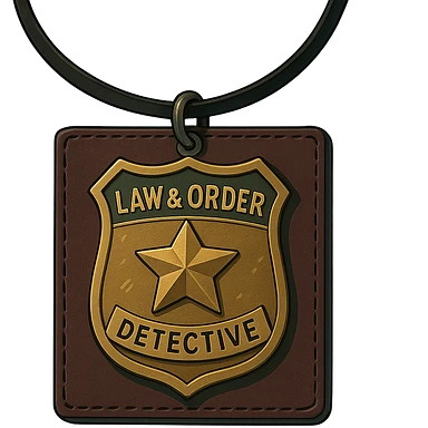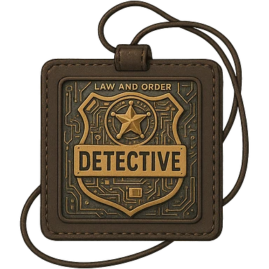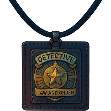 a detective badge, law and order. cyberpunk futuristic, square leather neck worn emoji