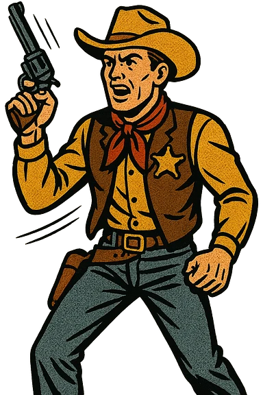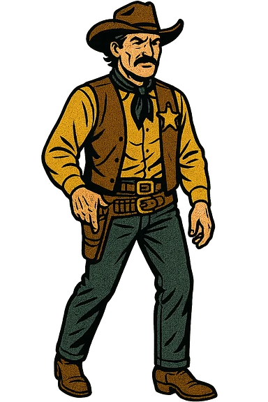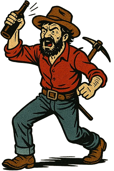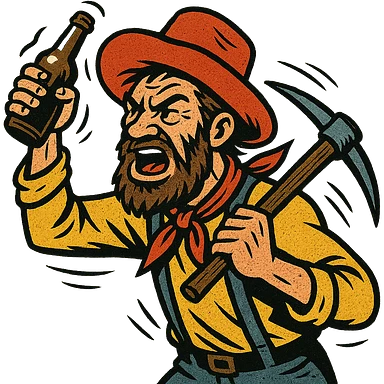 A drunk gold prospector in an early mining town in the American West during the Gold Rush in an argument with the local sheriff with a saloon in the background. illustration | AI Emoji Generator