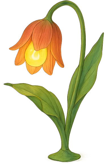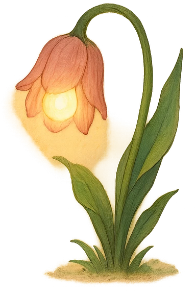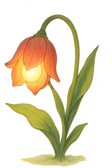 a lamp made out of a tulip flower, the bulb in the flower, natural colors, soft, fairy-like atmosphere, illustration | AI Emoji Generator