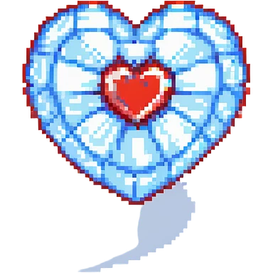 A transparent hologram of a red 3D heart with a bright blue star inside emoji