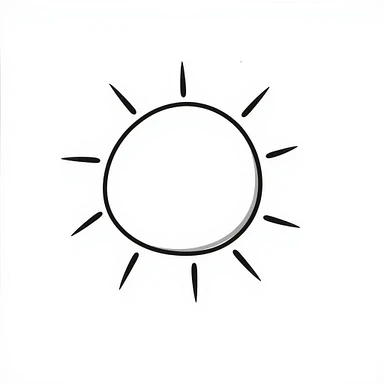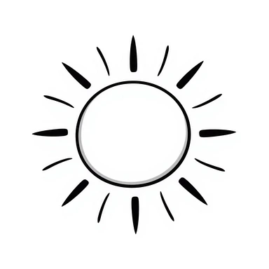 A hand-drawn doodle of a sun with a smiling face, in the style of Notion icons emoji