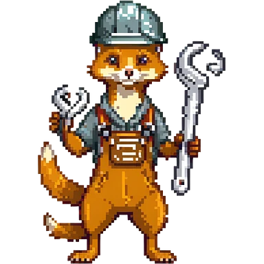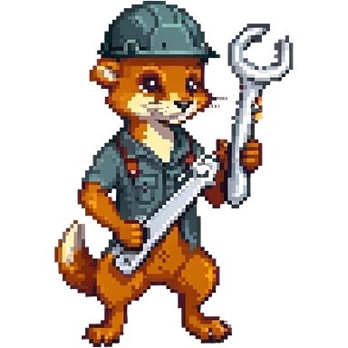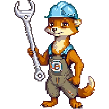 AN ANTHROPOMORPHIC WEASEL WITH A HARDHAT AND A LARGE SPANNER WRENCH - AIRPLANE FUSELAGE nose art 1940s era - he has a very VERY dark and mischevious look in his eye- grinning illustration | AI Emoji Generator