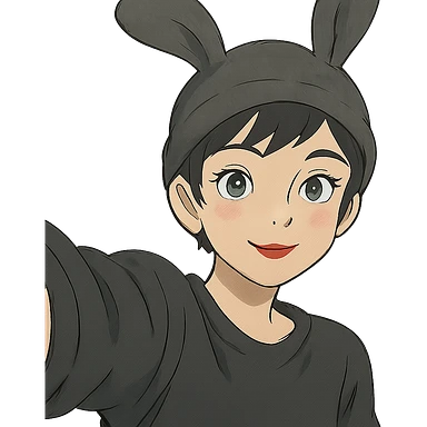 1 female, gothic pixie with a bunny ears beanie cute selfie emoji