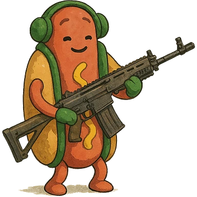 The tiktok dancing hotdog, except he has a scar12 battle rifle emoji