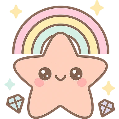 kawaii sea star, rainbow pastel, sparkling jewels, blushing cheeks, cute smile emoji