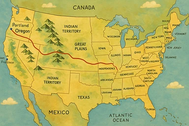 Make a copy of this map with all the labels and red route line which can be labelled as the Oregon Trail emoji