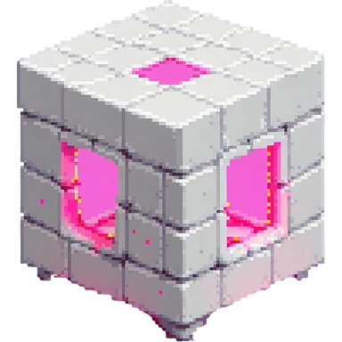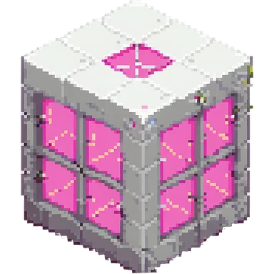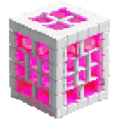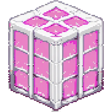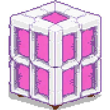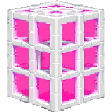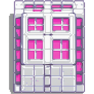 Сделай русскую панельку белого цвета. Она должна быть в виде куба, а также с окнами 3 на 3 на каждом фасаде. Некоторые окна неоново-розовые. Сверху окна нет emoji