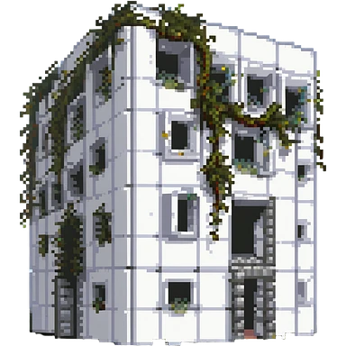Сделай русскую панельку белого цвета. Она должна быть в виде куба, а также с окнами 3 на 3 на каждом фасаде. Некоторые окна заросли лозой. Сверху окна нет emoji