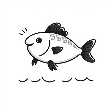 hand-drawn fish peeing with black lines emoji
