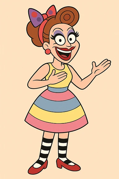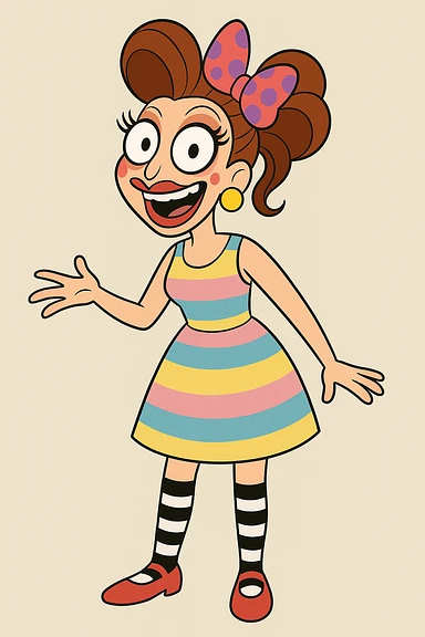 girl brown classic curls hair blue witch a witch costume purple stripes socks black boots girl yellow hair Chinese Girl Costume Red Oriental Dress red shoes some trick or treats illustration | AI Emoji Generator