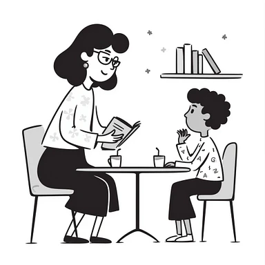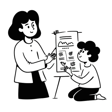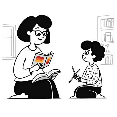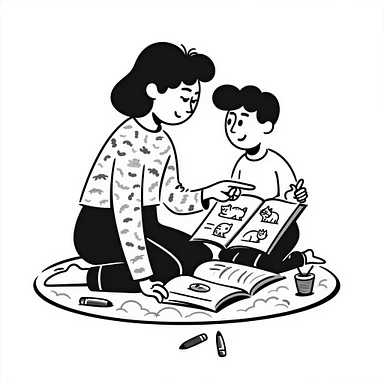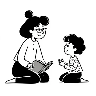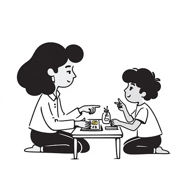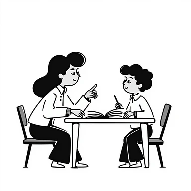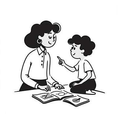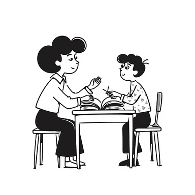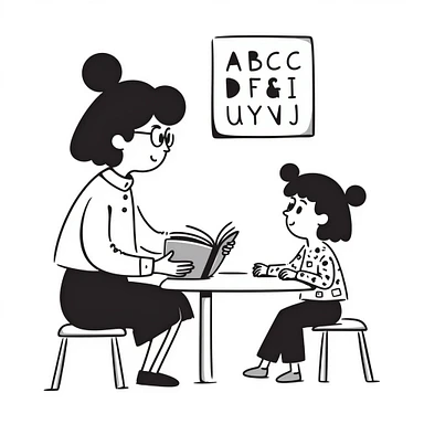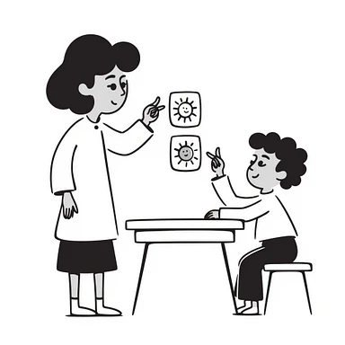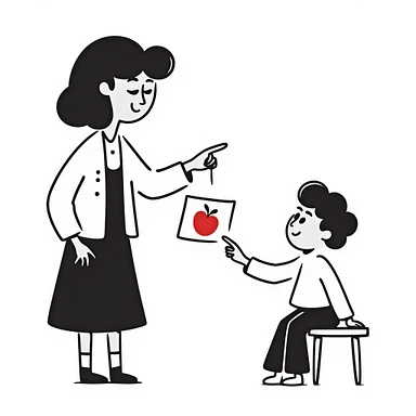 educator or speech therapist with child, who helps child with lessons emoji