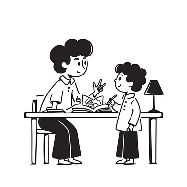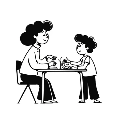 educator or speech therapist with child, who helps child with lessons sitting at the table emoji