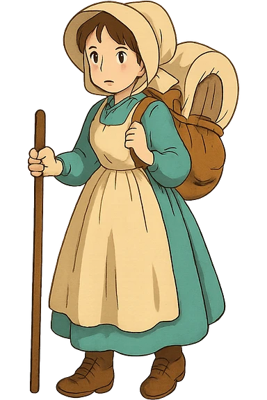 A young pioneer woman from the 1840s about to head off on the Oregon trail emoji