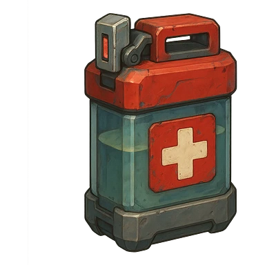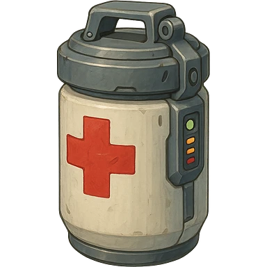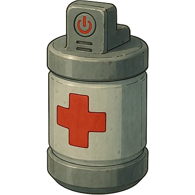the image is the icon for a videogame insta-use item, it is a medpack- fututistic cyberpunk- resembles a canister with deadswitch emoji