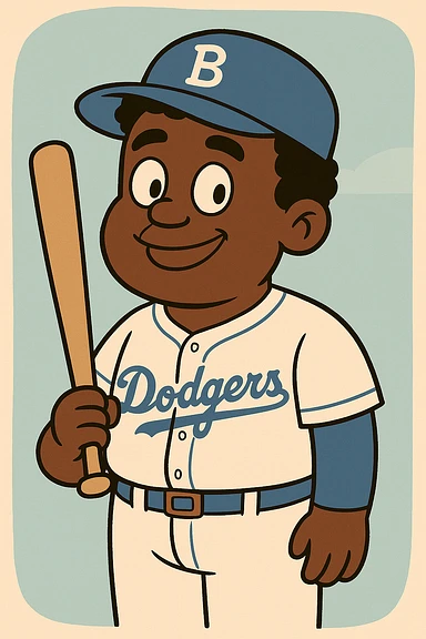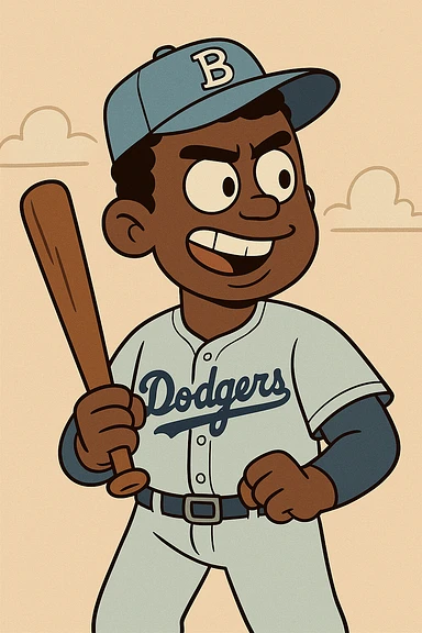 Light blue Little people pictures a boy Jackie Robinson Witam by 20 Label Sanches Vegas Mustined by Linzie Heater illustration | AI Emoji Generator
