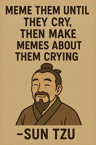 "Meme them until they cry, then make memes about them crying" -Sun Tzu as an inspirational poster, minimalism, semiotic signage, graphics for limited visibility signage emoji