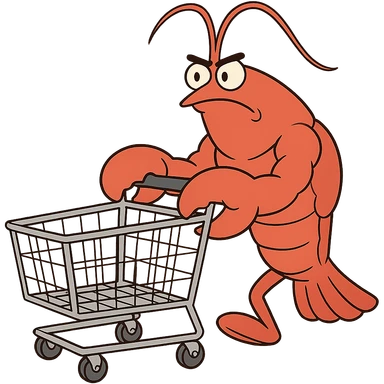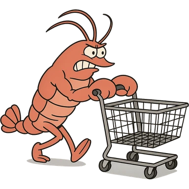 strong lobster pushing a shopping cart, transparent background emoji