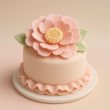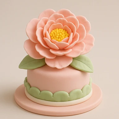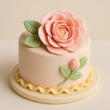 pastel fondant cake art style Chanel tart topped with a pink camellia flower and logo emoji