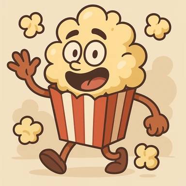popcorn in a yellow bucket, cartoon style, cheerful, simple background illustration | AI Emoji Generator