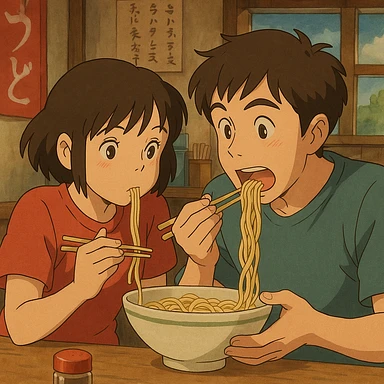 Two siblings lying on a grassy hill, gazing up at drifting cloud emoji