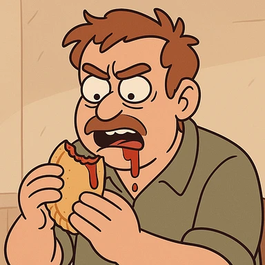 Side oil head brown shirt beige shirts eating mcdonalds fries some sauce illustration | AI Emoji Generator