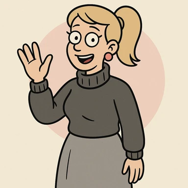 Women Medium Blonde median ponytail hair pink circle earrings Charcoal Athens Merino Wool Roll Neck Jumper Grace skirt a hand say hello emoji