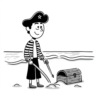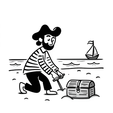 sketch of a treasure chest with a big question mark, hand-drawn emoji