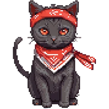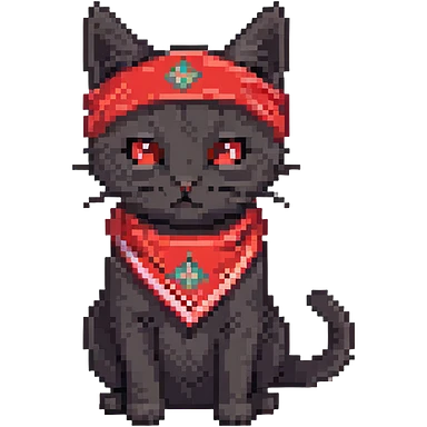 a little black socks cat with two uzis and a red bandana, he's just blasting! emoji
